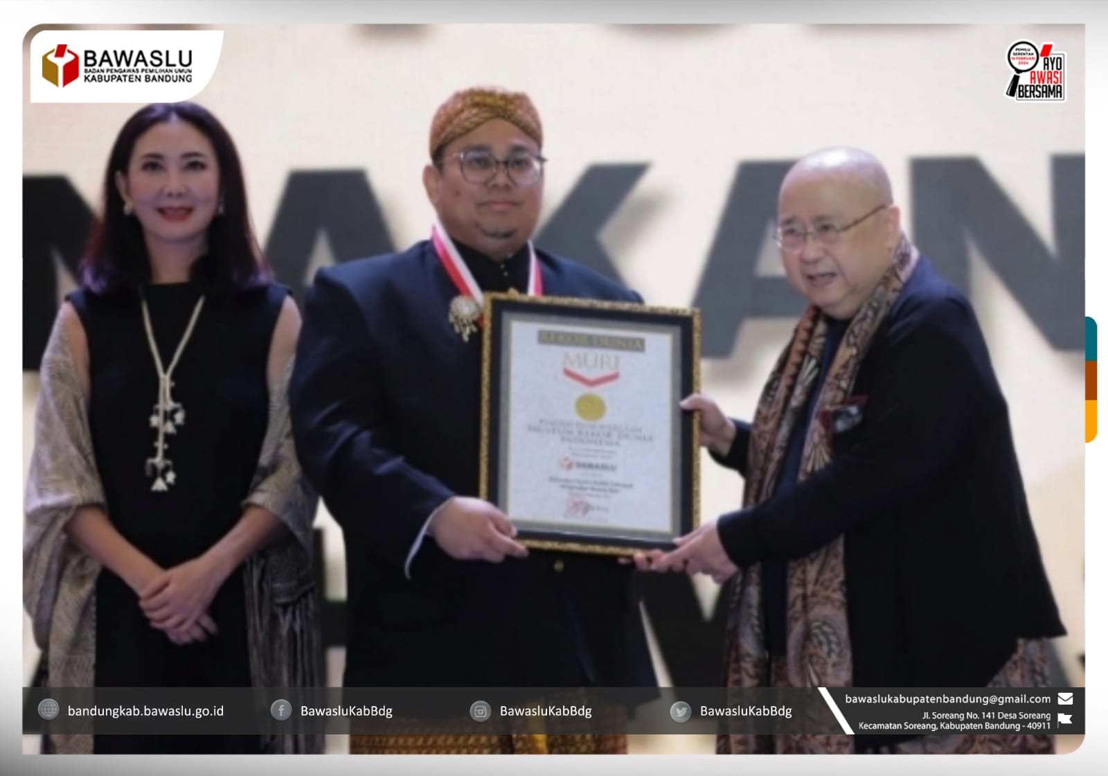 Penghargaan MURI tersebut turut disaksikan seluruh Anggota Bawaslu RI, perwakilan lembaga penyelenggara pemilu seperti KPU dan DKPP.